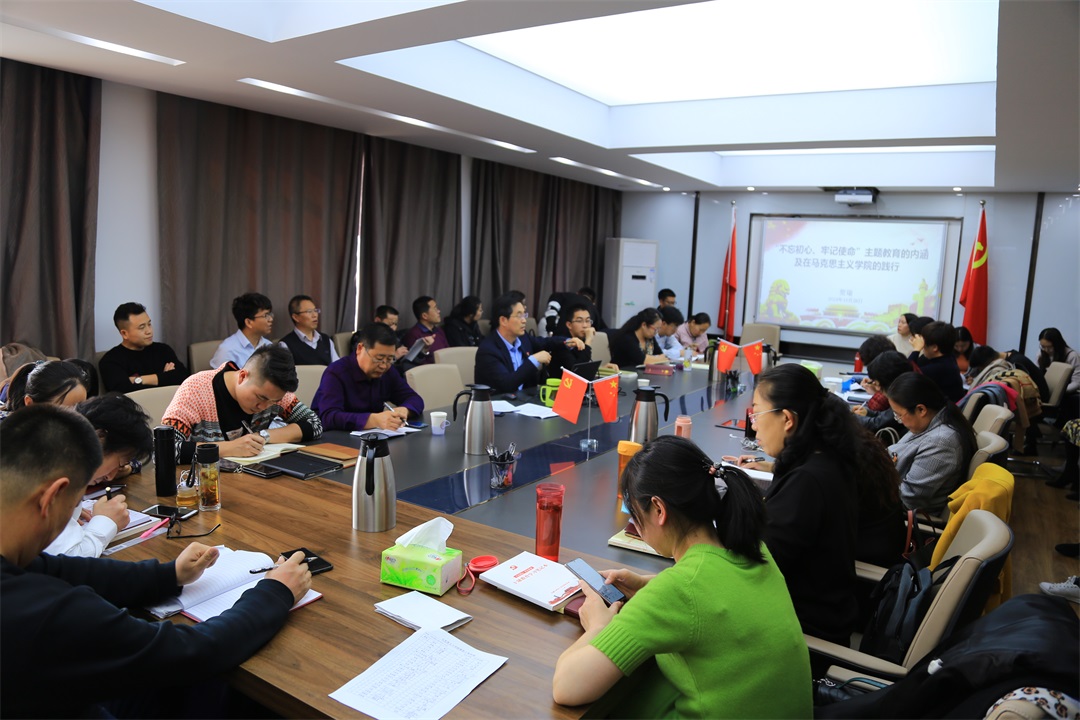 10月28日下午,在ky开元集团官网507会议室,党总支书记贺瑞以“不忘初心、牢记使命主题教育的内涵及在ky开元集团官网的践行”为题,为学院师生讲授“不忘初心、牢记使命”主题教育专题党课。校第五主题教育指导组周绍渊同志到会指导。