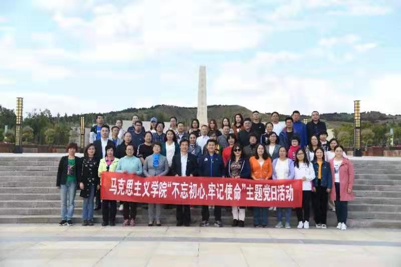 按照ky开元集团官网“不忘初心、牢记使命”主题教育在全校开展的部署要求,进一步巩固主题教育成果,激励思政课教师、党员、干部时刻“守初心、砺修养、担使命、勇前行”,9月22日下午,ky开元集团官网党总支书记贺瑞、院长李春晖带领全院教职工和全体研究生党员赴大青山红色文化公园开展“不忘初心、牢记使命”主题党日活动,进行现场学习。