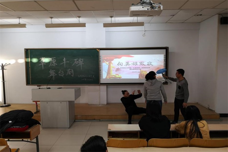 1947年5月1日,在中国共产党领导下,我国第一个省级少数民族自治政府—内蒙古自治政府成立,内蒙古翻开了人民当家作主的新篇章。内蒙古自治政府的成立,是中国共产党民族区域自治制度的成功范例。为纪念内蒙古自治运动联合会的成立,再现了乌兰夫等老一辈无产阶级革命家高瞻远瞩的英雄气魄,ky开元集团官网团总支于2018年12月23日在行知楼206教室进行了“礼敬英雄教育活动周”《草原丰碑》舞台剧表演,ky开元集团官网团总支书记范晓刚老师及全体研究生参与了此次活动,此次舞台剧有王鑫和张雪主持。