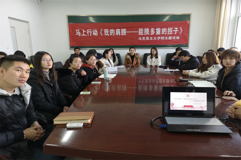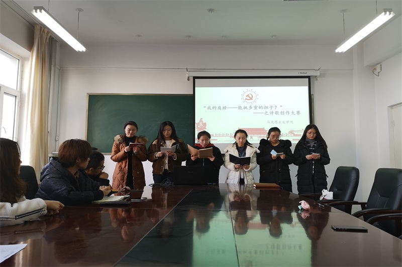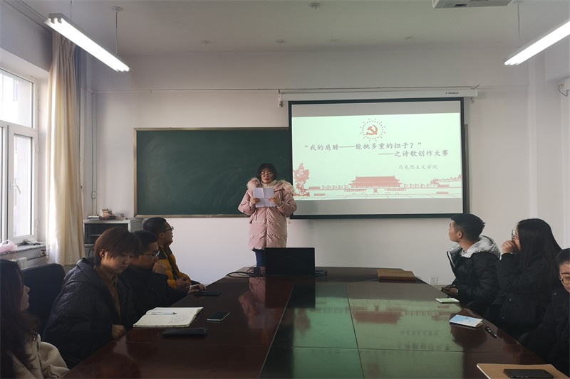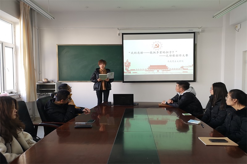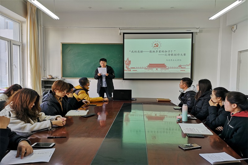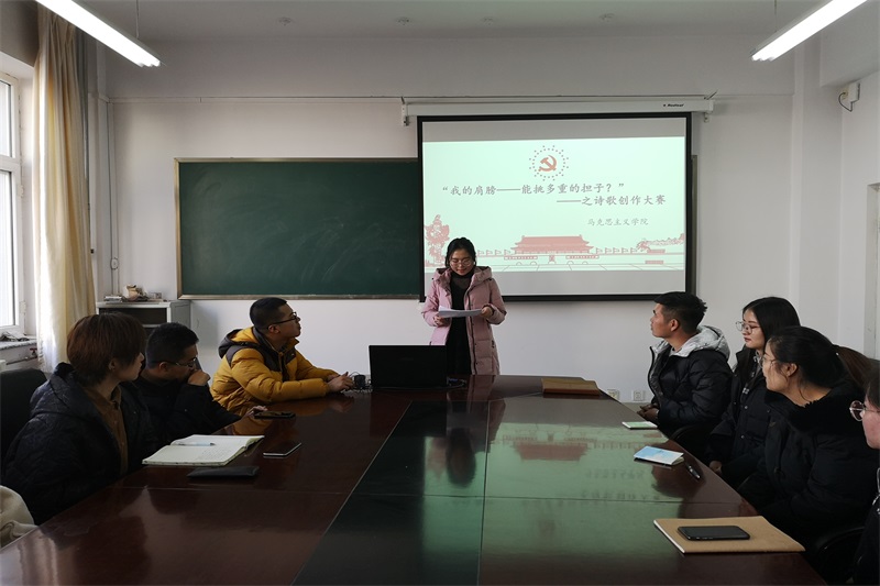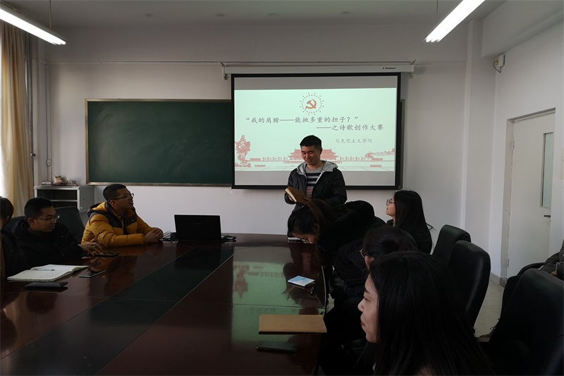 2018年12月18日中午,开元官网在盛乐校区学院楼B216举办“诗歌创作”活动。团支部书记范晓刚老师及研一、研二全体研究生参加了本次活动。