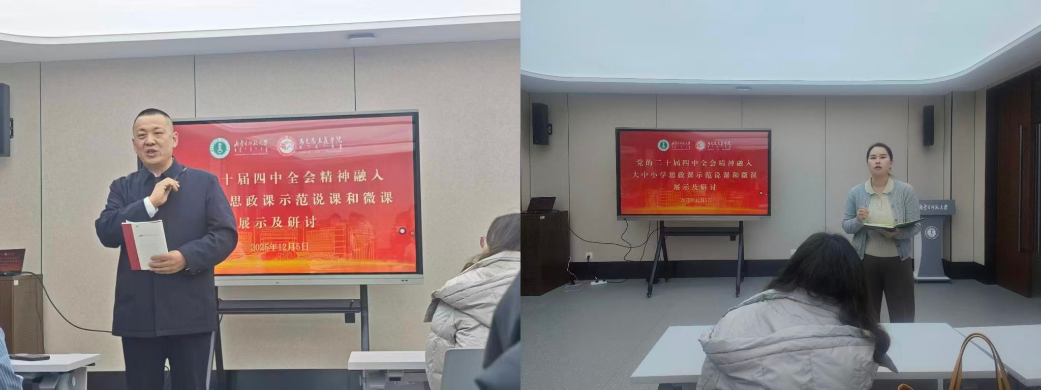 会议现场,师生们与全国1000多万线上观摩的思政教育工作者共同聆听了由内蒙古自治区教育厅精心创作的大中小学思政课一体化主题曲《育人之路》,大家纷纷点赞,引起广泛共鸣。随后师生们全程观摩了教育部组织开展的“党的二十届四中全会精神融入大中小学思政课示范说课和微课展示活动”,认真观看了来自不同学校不同学段的思政课教师的说课和微课展示。这些示范课程在教学内容设计、教学方法创新、理论与实践结合等方面展现了超高水平,为与会师生提供了将党的二十届四中全会精神融入思政课教学的丰富教学灵感与借鉴范式。