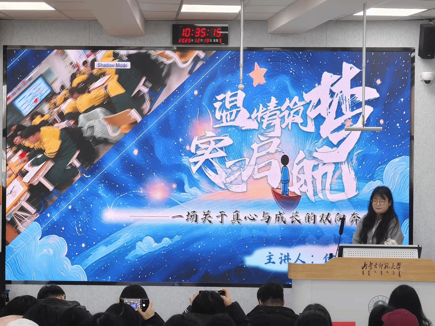 会议邀请2022级优秀实习生代表侯冰芮分享实习经验与收获。侯冰芮同学生动讲述了自己在实习过程中从理论学习到实践应用的转化路径,并结合实习生可能面临的角色转换困惑、教学技能短板等问题,提供了切实可行的建议,为即将踏上实习岗位的师范生们提供了宝贵的经验参考。