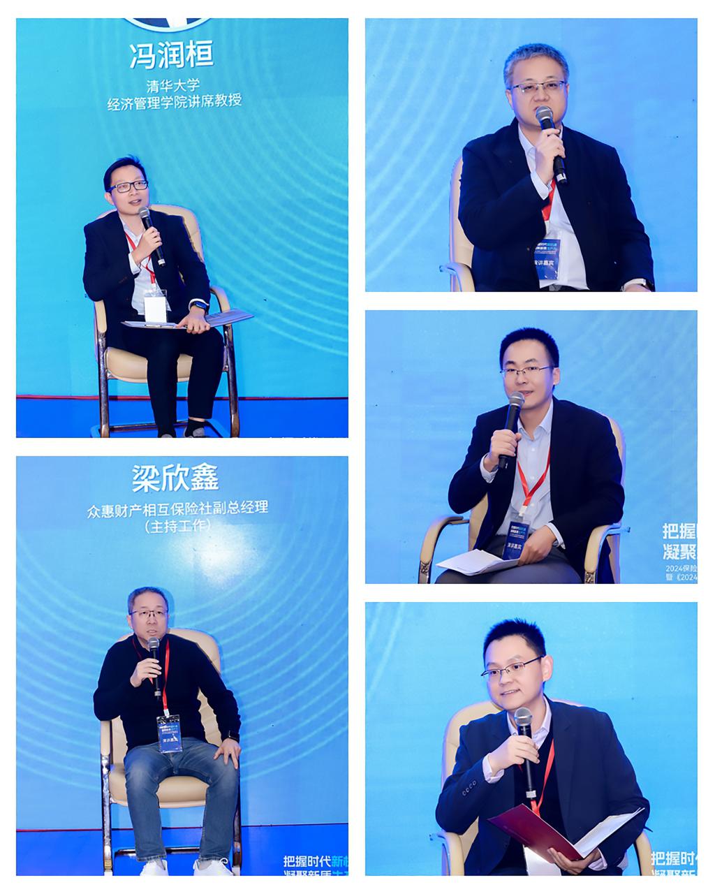 圆桌论坛主持人清华大学中国保险与风险管理研究中心主任冯润桓教授与众惠财产相互保险社副总经理梁欣鑫先生,北京人寿副总经理、董事会秘书刘睿文先生,安永中国保险业战略与转型咨询服务合伙人杨本心先生,新葡萄8883官网AMG官网中国精算研究院副教授廖朴先生四位嘉宾,围绕中小型保险公司的发展与宏观经济环境这一主题,从宏观经济的趋势、行业发展趋势、公司战略定位、风险管理与创新等多个维度进行深入的探讨。
