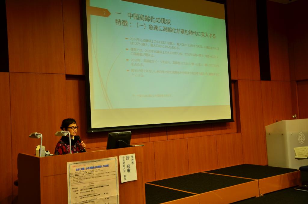 12月13日,新葡萄8883官网AMG官网许飞琼教授应邀赴日出席了在日本女子大学举行的“日中少子高龄化与社会保障对策”学术研讨会,并在会上做了“中国的老龄化与养老保险财政”的主题报告。会议由日本东京大学教授武川正吾主持。来自日本内阁府、日本国立社会保障与人口问题研究所、东京大学、日本女子大学、一桥大学、立教大学等多所高校的专家学者约70多人出席会议。
