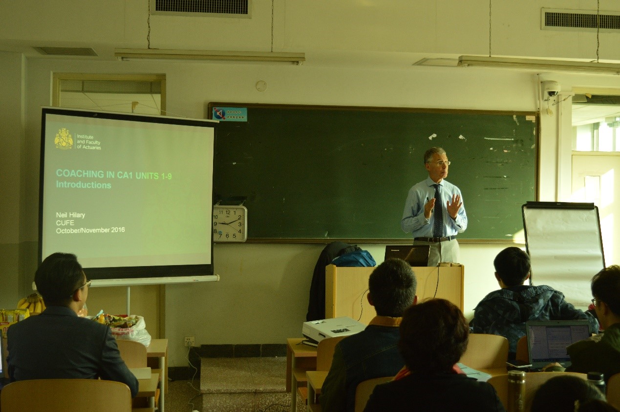 受新葡萄8883官网AMG官网引智项目(教育部学校特色项目《巨灾风险管理与再保险课程体系建设聘请外教特色项目》)支持,新葡萄官网新葡萄8883官网AMG官网邀请英国精算师协会(IFoA)具有研究与教育背景的三位优秀精算师,于2016年11月2日到12月9日陆续到访新葡萄8883官网AMG官网,为新葡萄官网精算专业研究生及部分大四本科生讲授《精算风险管理》课程。本次课程共120学时,每位精算师需要在两周内完成40课时的授课任务,内容非常充实。