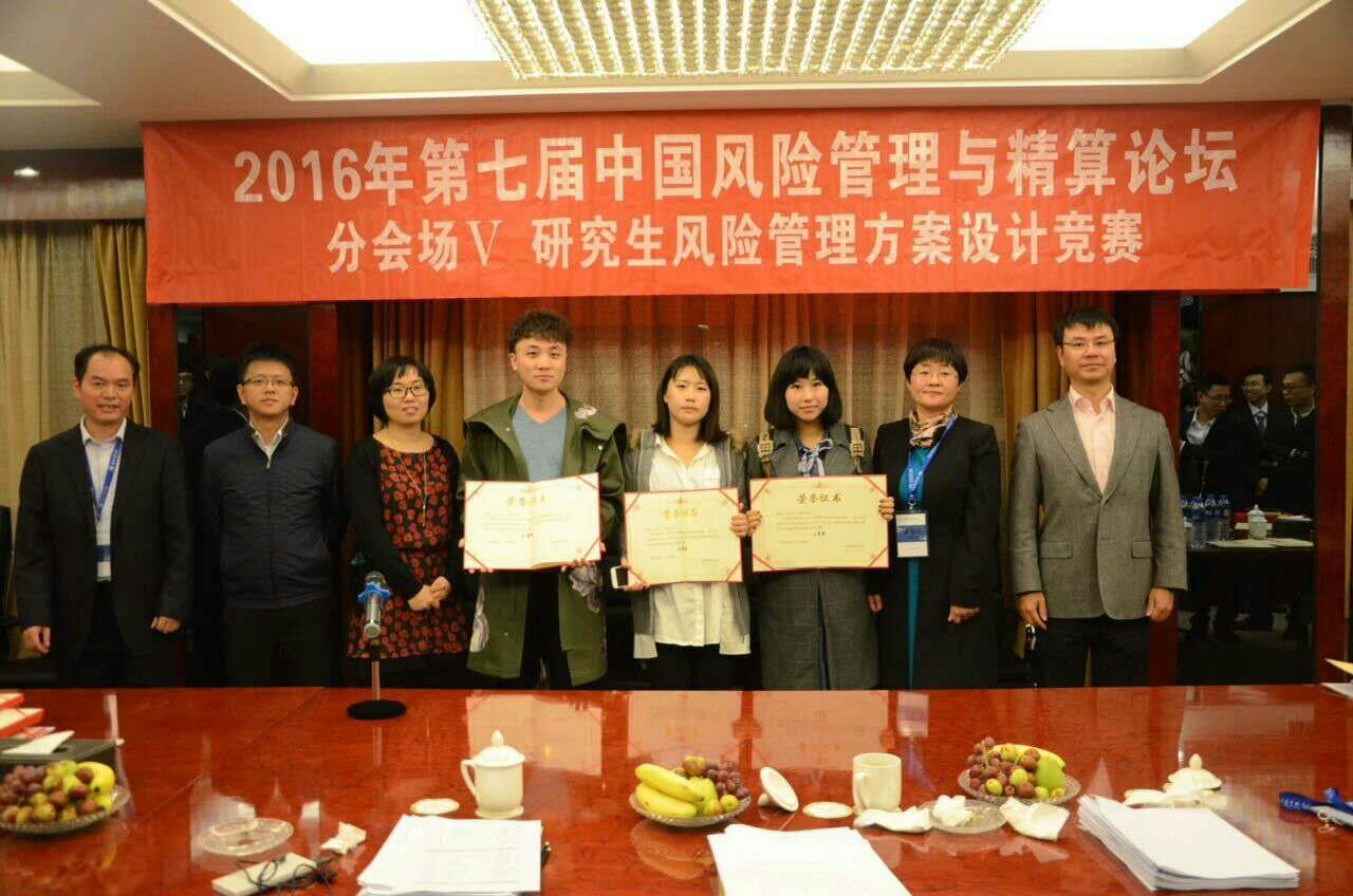 在第五分论坛中,2015级精算学硕士研究生陈健、武亦文、李墨文参加了“研究生风险管理方案设计竞赛”,并就提交的论文《对“偿二代”TVOG因子的验证》进行了主题演讲。经过激烈角逐,7支代表队获得竞赛等级奖励。陈健等荣获三等奖。