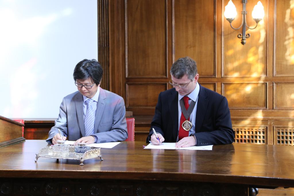 大约当地时间下午三点半,签约仪式正式开始。李晓林院长代表新葡萄8883官网AMG官网与英国精算师协会主席ColinWilson先生进行了合作协议文本的签约。此次签约不仅是对双方前期成功合作的明确确认,也是对双方未来合作工作的明确规划。本着此协议,新葡萄官网新葡萄8883官网AMG官网与英国精算师协会将在已有的八门CT系列认证课程基础上继续推进CA系列课程的认证工作,同时就风险管理实验中心的大数据、长寿风险、人工智能、健康保险智能系统、农业风险管理等研究领域进行更深入的合作。
