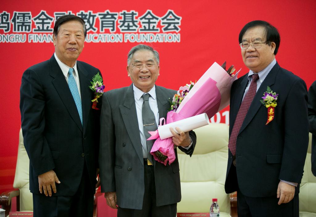 颁奖典礼上,鸿儒教育基金会理事长许均华先生致辞并宣布获奖名单;戴相龙先生和魏本华先生共同为李继熊教授颁发了获奖证书和奖牌;“中国金融学科终身成就奖”评委会副主任、原对外经济贸易大学金融学院院长吴军先生宣读了李继熊教授的颁奖词,高度评价李继熊教授为中国金融保险学科建设、理论创新研究、高端人才培养等方面做出的卓越贡献。