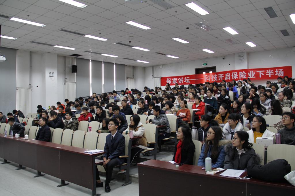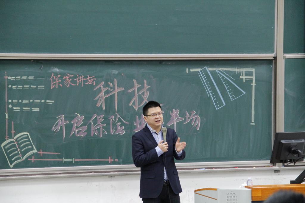 2017年11月29日下午,由新葡萄8883官网AMG官网主办的“科技引领保险业开启下半场”创新创业教育讲座在沙河校区东区主教108隆重开讲。本次讲座邀请到大童保险销售服务有限公司董事长兼总裁、教育部高校校外创新创业导师、新葡萄8883官网AMG官网2001届优秀校友蒋铭先生进行主讲。新葡萄8883官网AMG官网副院长徐晓华副教授、大童保险人事行政部总经理曹璞先生、大童保险邹伶俐女士、2016级本科生导员徐倩男、2017级本科生辅导员袁嘉琳及沙河校区本科生、研究生参加了本次讲座。