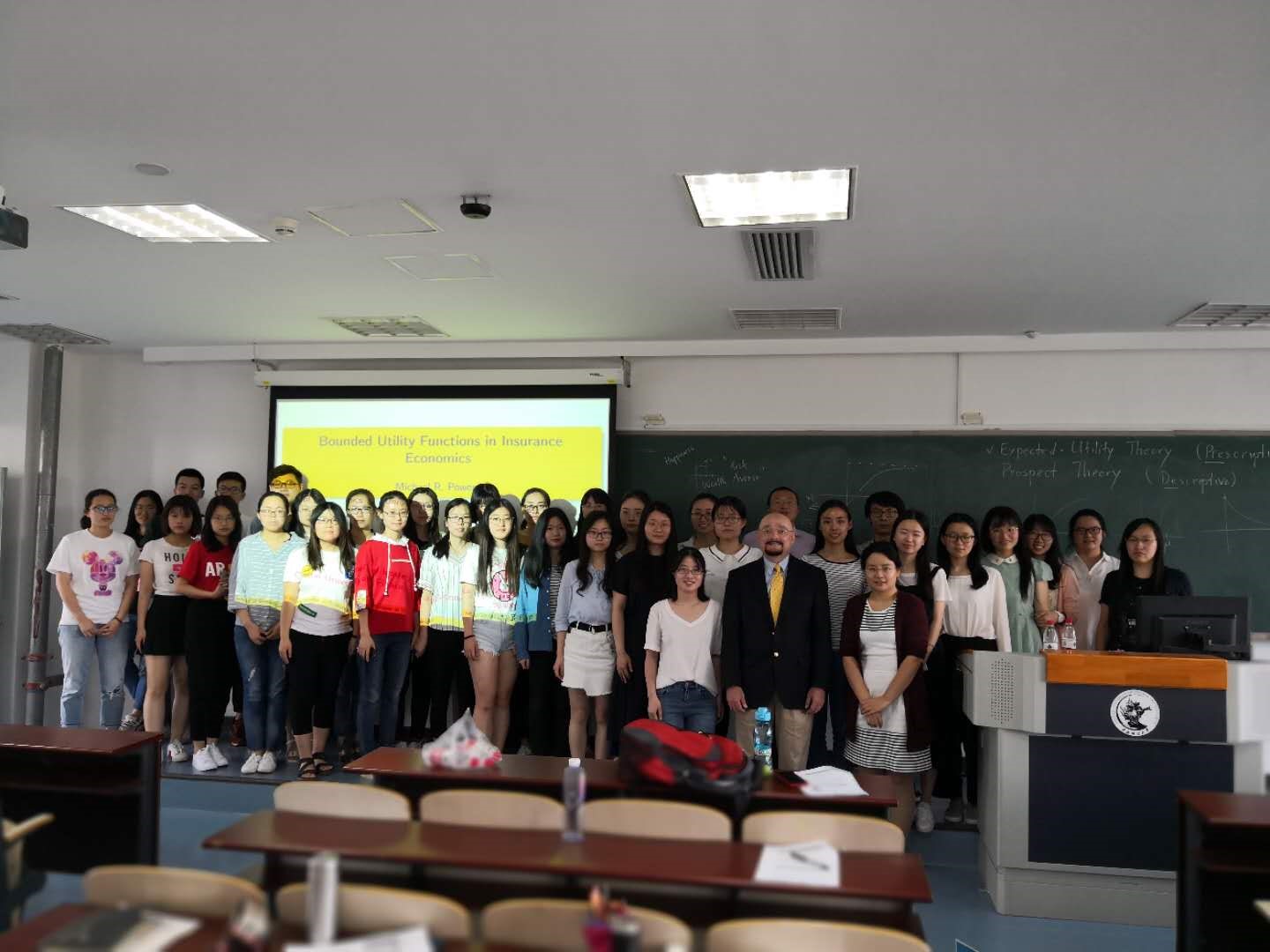5月23日下午,清华大学经管学院苏黎世保险集团讲席教授Michael R. Powers先生来访新葡萄官网,并以“Bounded Utility Functions in Insurance Economics”为主题,为新葡萄官网2017级研究生作了一场优质的学术讲座。新葡萄官网陈华副教授和郑莉莉副教授、西南财经大学王晓全副教授参加了本次讲座。