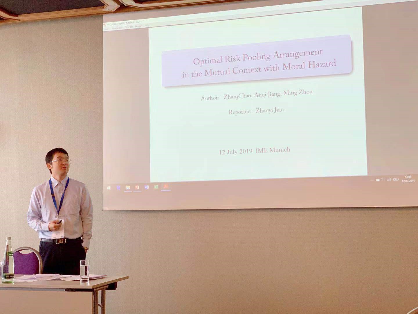 在会上,周明研究员指导的硕士生焦展翼做了题为“Optimal retention rate in risk pooling arrangement with moral hazard”分会场报告。他研究了在道德风险下最优风险分摊问题,以最大化效用为目标,建立了最优风险池容量模型及最优自留率模型。