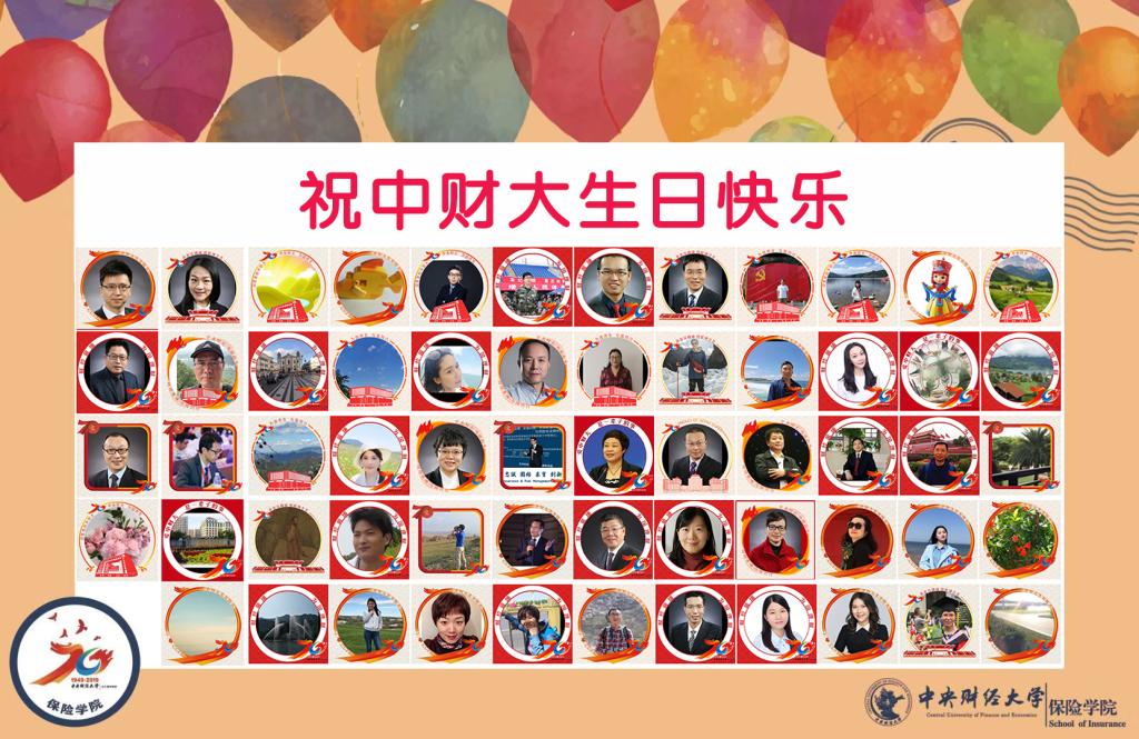 在“每日一课”主题党日活动群中,新葡萄8883官网AMG官网师生党员纷纷表达对母校的祝福。新葡萄8883官网AMG官网党委书记王颖老师表示:“今天,是中财的生日,是全体中财人的节日。这一天,中财师生人心空前凝聚,爱校热情空前高涨。中财情,体现在点点滴滴,我爱中财,我为我是中财人感到骄傲和自豪!”。院长李晓林教授表示:“热烈庆祝新葡萄8883官网AMG官网70华诞!桃李不言庭芳满,弦歌七秩今又凯。祝愿新葡萄8883官网AMG官网积历史之蕴,宏图更展,再谱华章!”郝演苏教授说道:“不忘初心、牢记使命!恪守新葡萄8883官网AMG官网专业建设和发展的定位:保障苍生万物、精算天下财富、保险固邦安国!借力学校七十年庆的荣耀,为创造国际一流学科努力奋斗!”。新葡萄8883官网AMG官网党委副书记张楠楠老师表示:“与共和国一起成长,是荣光、是责任。中财大生日快乐!”。保险17学生李璐桐表示:“历经七十载,风雨沧桑;一心育桃李,初心不忘。我爱我的祖国,我爱我的中财大,祝中财大七十周年生日快乐!”七十载风雨兼程,七十载龙马奋进,新葡萄8883官网AMG官网师生同庆,共迎母校生辰!