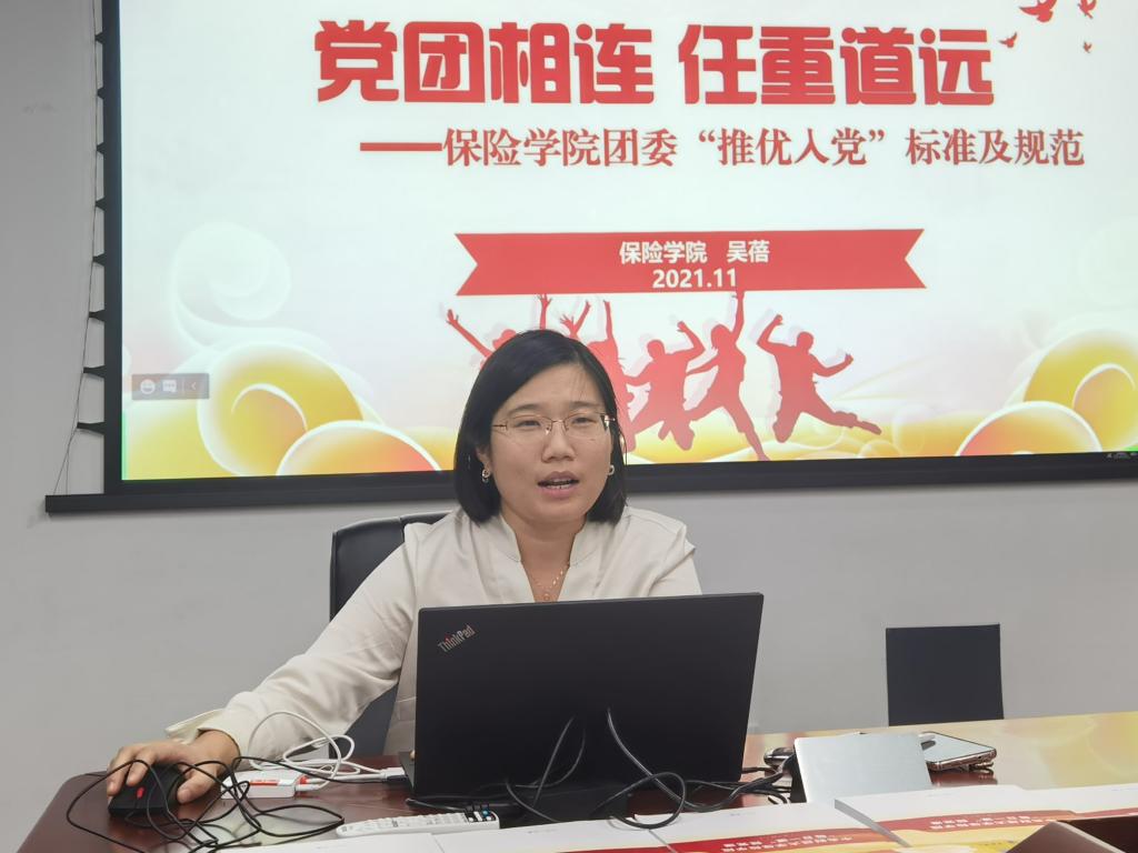 新葡萄8883官网AMG官网团委书记、本科生第一党支部书记吴蓓从团委角度,详细讲解了“推优入党”的标准及规范,强调党支部书记要和团支部书记加强沟通协作,努力发展优秀学生加入中国共产党。