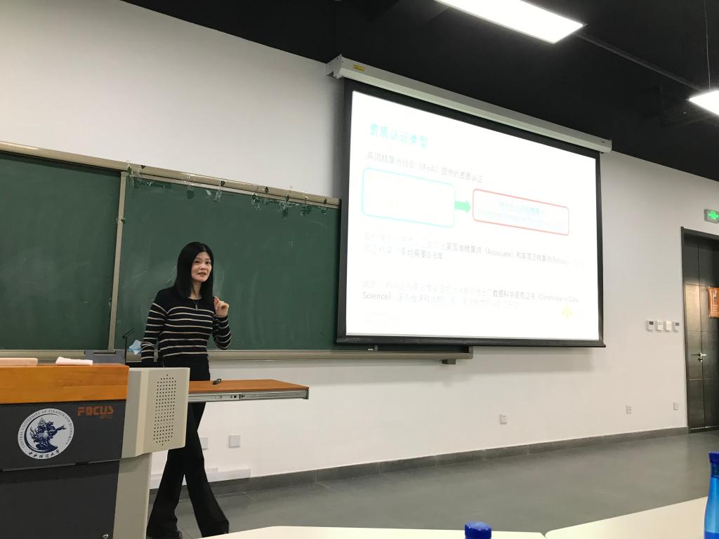2021年12月15日下午,英国精算师协会全球理事袁曦女士、于扬先生以及东亚区首席代表李文立女士应邀采取线上线下结合的方式,在新葡萄8883官网AMG官网沙河校区与师生进行专题分享,主题涉及可持续发展与精算价值、ESG(环境、社会与治理)投资以及英国精算师协会资质认证框架等。袁曦女士现任中再集团风险管理部资深经理,于扬先生现任Redington Ltd董事总经理,Redington在华子公司预远科技创始人与CEO。新葡萄8883官网AMG官网精算科学系主任郑苏晋教授,徐景峰教授等师生参加了本次讲座。