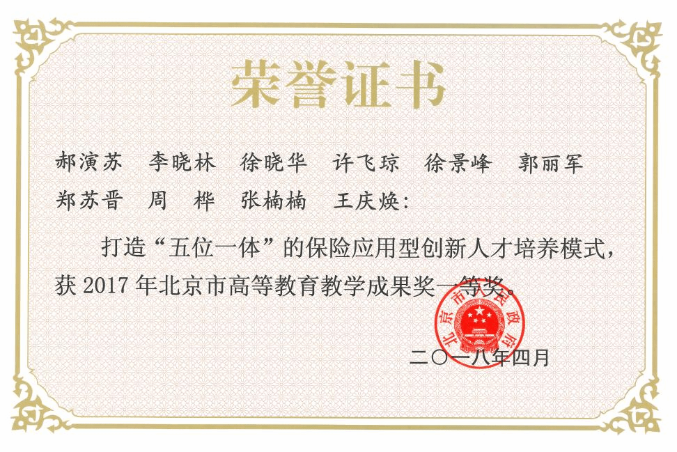 新葡萄8883官网AMG官网是国内最早开展保险教学的学院,1952年在国内率先设立了保险学专业。2002年保险学专业成为国家级重点学科,2007年保险学专业被教育部和财政部联合批准为我国首批特色专业建设点,是全国保险专业中唯一的国家级特色专业建设点,2008年保险专业成为北京市优秀教学实践基地,2009年保险教学团队被评为北京市优秀教学团队。2019年保险学专业获评首批国家级一流本科专业建设点,保险学专业在全国保险教育领域中一直处于领先的地位。该专业旨在培养能够助力国家经济和社会发展、具有“四为服务”理念、拥有浓厚家国情怀、可以担当民族复兴大任的创新型、实用型、复合型时代新人。