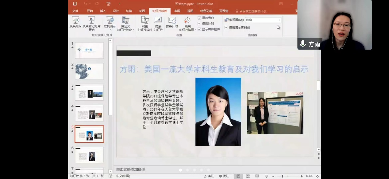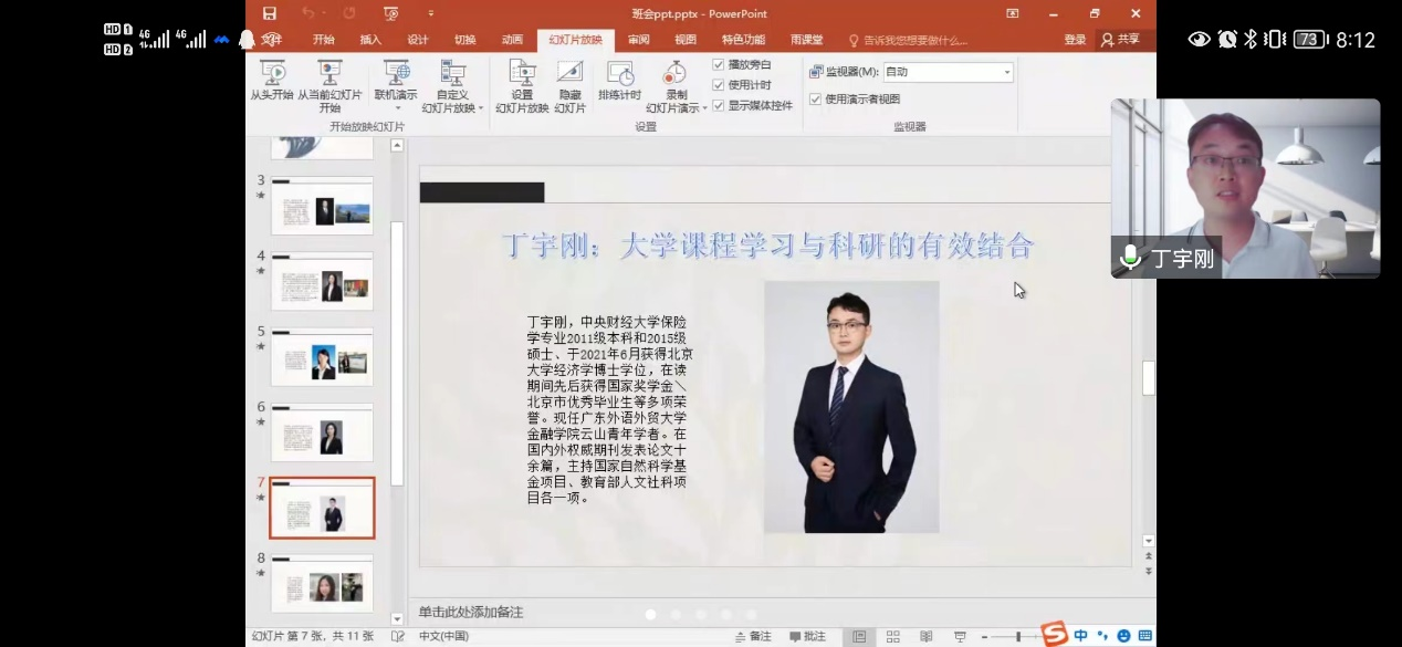 本次主题班会邀请到了新葡萄8883官网AMG官网六位优秀校友,它们分别是:平安人寿保险股份有限公司投资管理中心助理投资经理邹琪慧学姐(2010级保险学本科生和2014级保险专硕),广东外语外贸大学金融学院云山青年学者丁宇刚博士(2011级保险学本科生和2015级保险学学硕),美国天普大学保险学专业方雨博士(2011级保险学本科生和2015级保险专硕),BI挪威商学院金融学专业博士生耿榕(2011级保险学本科生),香港大学经济与工商管理学院金融学博士生唐琳(2013级保险学本科生和2017级保险学学硕),瑞士圣加仑大学金融学(保险方向)专业博士生宁定宸(2013级保险学本科生和2017级保险学学硕),为保险学22班同学就适应大学生活、大学本科学习、科研切入、发展方向选择等方面内容进行专场交流和经验分享。