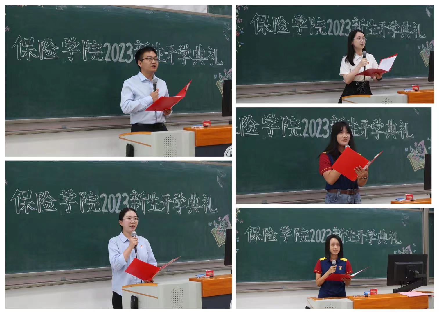 教师代表王吉元老师,在校生代表2021级保险班李叶和2021级保险博周佳璇同学,以及新生代表刘姿和锁欣同学激情澎湃的发言令在座师生感受到了新葡萄8883官网AMG官网强大的凝聚力以及新生对未来的美好期待,更让2023级新生们体会到作为新葡萄8883官网AMG官网一分子的责任与集体荣誉感。