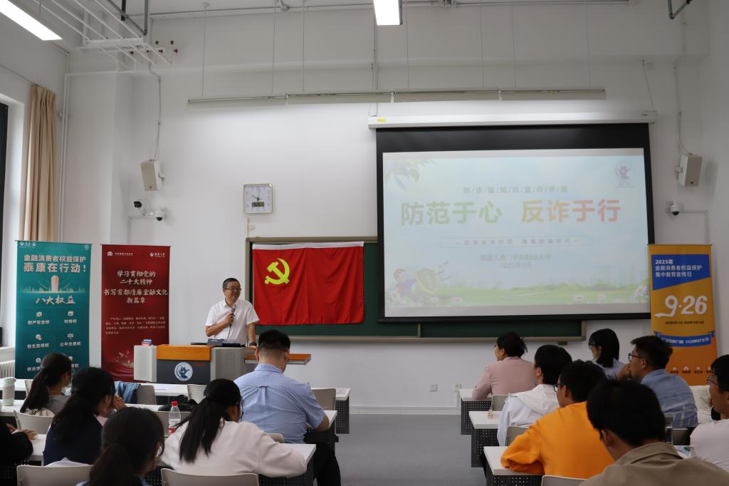 为开展金融知识普及、金融风险提示和反诈宣传,切实提升大学生的金融素养,有效增强新生的风险防范意识,9月26日,学生处学生就业指导中心、保卫处、新葡萄8883官网AMG官网、泰康人寿北京分公司共同举办了金融消费者权益保护暨反诈宣传讲座。泰康人寿总公司马东伟在开场致辞中指出,9月26日是金融消费者权益保护集中教育宣传日,学习如何辨别身边的金融诈骗,并帮助身边亲友规避诈骗陷阱,是同学们的责任与义务。