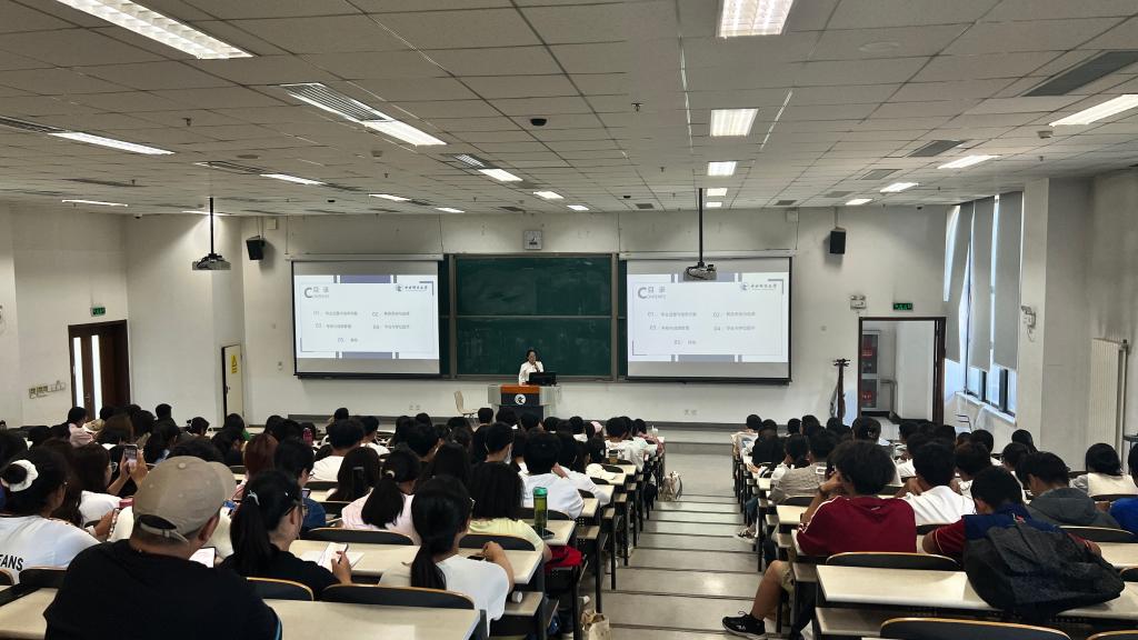 胡悦老师结合相关文件和政策要求,为新生深入讲解人才培养计划,介绍不同类型课程的学习方式和考核要求,向同学们介绍培养方案中不同模块的学分要求,强调学分的重要性并向同学们讲解修学分的正确方法。此外,胡悦老师详细罗列出在四年大学生活里学生可能面临的学业问题并详细解答。