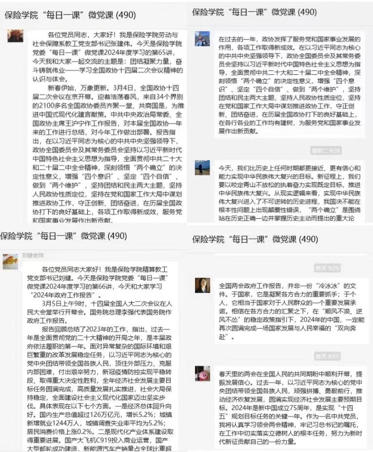 各党支部积极组织党员们通过电视、网络直播、学院“每日一课”微党课平台等形式学习政府工作报告,切实提升理论学习的深度和厚度。