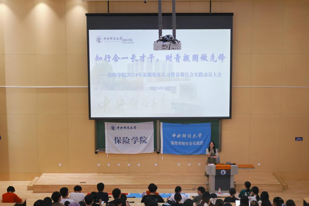 学院团委书记吴蓓在发言时强调,暑期社会实践是“五位一体”发展的重要一环,并希望同学们将专业知识学以致用,深入基层,脚踏实地。她建议同学们可将实习与实践相结合,从党的二十大报告以及全国两会报告中提取与保险、经济相关的内容,确定实践报告的主题,希望同学们在集体实习和实践中有所学,有所得,用脚步丈量祖国大地,用内心感应时代脉搏。
