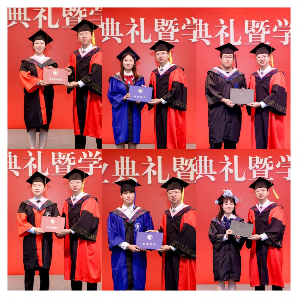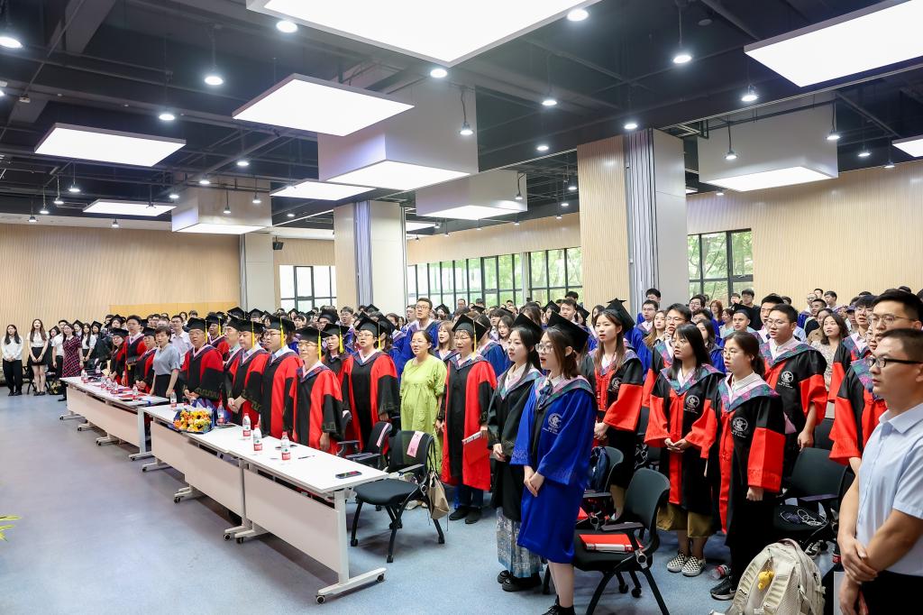 在欢快的音乐声中,学位授予仪式正式开始。由副院长郑苏晋宣读获得博士学位、硕士学位学生名单,副院长王丽珍宣读获得学士学位学生名单。周桦院长为毕业生进行拨穗正冠、颁发毕业证书并合影留念。