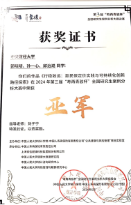 刘子宁老师指导的郭晓晴、孙一心、邱治澔团队以其项目《行稳致远:惠民保定价实践与可持续化创新路径探索》的创新思维和实践价值,荣获二等奖。