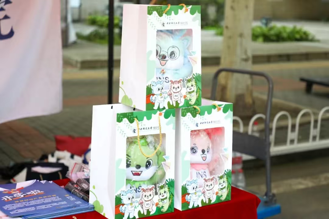 在迎新报到现场,新葡萄8883官网AMG官网吉祥物“保保龙”热烈地欢迎2024级的新同学们,学院为新生贴心准备了新生手册、“保保龙”卡套等物品。