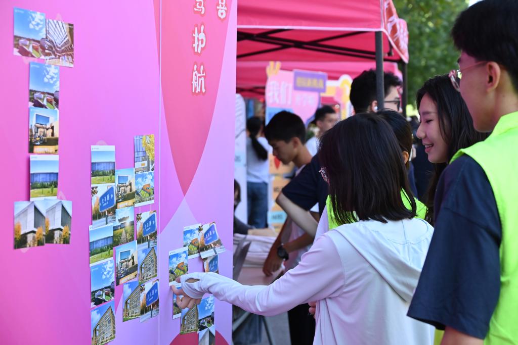 在欢迎墙的另一侧,学院为本科同学们准备了另一份惊喜,一张张明信片在墙上贴成了“INS”的形状,每一位“保宝们”都可以在上面抽取一张明信片,每张明信片的后面对应着一位高年级学长学姐的联系方式和对新生的祝福寄语,这也是新葡萄8883官网AMG官网“保险学子联合攀登计划”的开端,高年级学生一对一对接新生,帮助大家尽快适应大学生活,开启大学新篇章。
