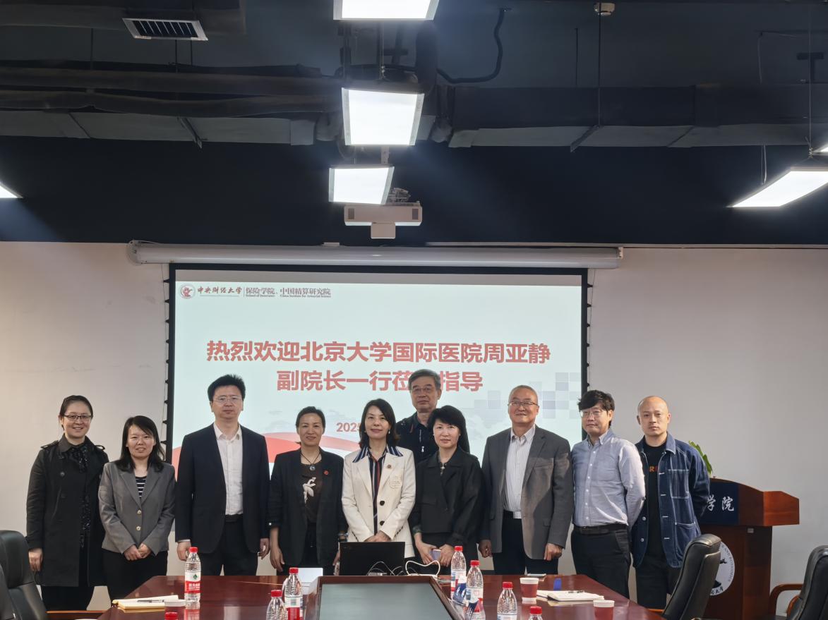 党委书记吕丽对北京大学国际医院周亚静副院长一行的到来表示热烈欢迎。她表示,学院始终高度重视教学实践基地建设工作,感谢北京大学国际医院为学生提供的实践实习平台,期待未来进一步深化校企协同育人机制、与北京大学国际医院在“医疗+保险”模式创新发展、党建联建共建、学生实习就业、人才培养、科学研究、社会服务等领域深化协同合作,实现医疗与保险的双向赋能。