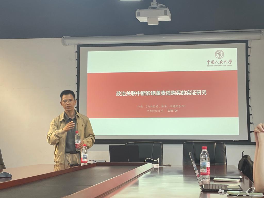 6月3日,新葡萄8883官网AMG官网2025年专题学术讲座暨风险管理与保险论坛(2025年度)第十一讲在沙河校区13号楼215会议室顺利举行。 本次讲座邀请到中国人民大学财政金融学院许荣教授担任主讲嘉宾,讲座主题为《政治关联中断对董事高管责任保险需求研究》。新葡萄8883官网AMG官网副院长王丽珍教授主持讲座,廖朴副教授、博士生及硕士生代表参与交流。本讲座受到“新葡萄8883官网AMG官网2025年专题学术讲座计划”和“新葡萄8883官网AMG官网青年科研创新团队支持计划”资助。