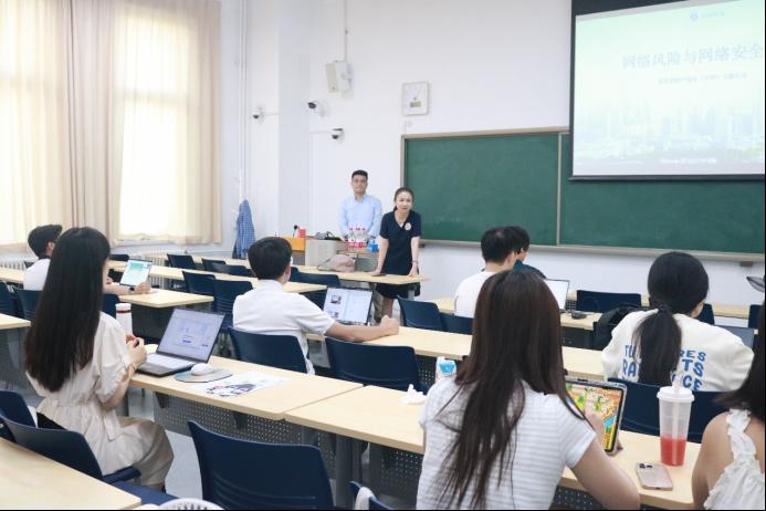 李艳秋女士作为新葡萄8883官网AMG官网校友,在保险领域深耕20多年,她先回顾了在中财的求学生涯,并向同学们分享了20多年来在内资保险公司、外资保险公司的工作经验和心得。王子龙先生作为资深从业人员,给同学们带来了有关“网络风险与网络安全保险”的主题讲座。