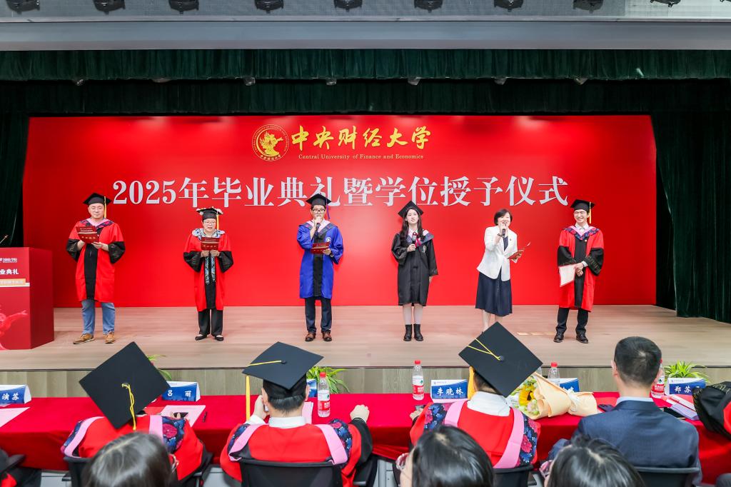 在学位授予仪式环节,王丽珍副院长、郑苏晋副院长分别宣读《关于2025届本科生毕业及授予学士学位的决定》《关于2025届研究生毕业及授予博士、硕士学位的决定》。随后,学位授予仪式正式开始,毕业生们依次上台,周桦院长、吕丽书记、王丽珍副院长、郑苏晋副院长为毕业生拨穗、授予学位。当毕业生们身着学位袍,接过学位证书,接受拨穗的那一刻,现场响起了热烈的掌声,这是对他们学业有成的肯定,更是对他们未来发展的美好祝愿。