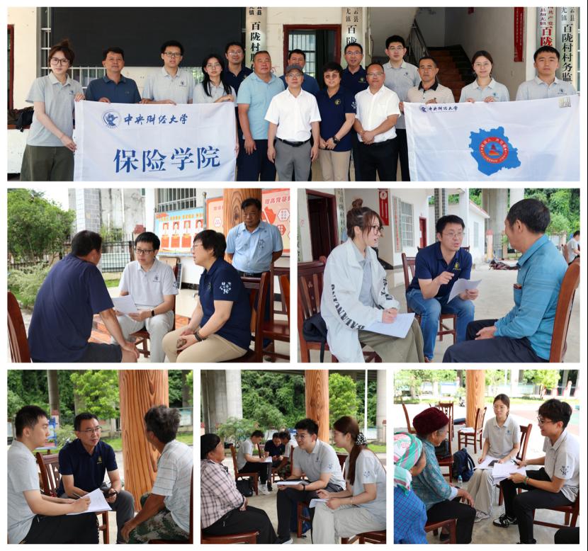 调研组成员顶着烈日,迎着酷暑,采取“一对一”访谈与问卷相结合的方式,与三个村六十多户村民进行了细致坦诚的交流。调研组成员认真记录村民说出每一个关键数字,倾听他们的担忧与期盼,向他们普及国家关于农业保险和社会保险相关政策,触摸当前乡村振兴与产业发展中关于风险保障、产业活力与人口结构的深层脉动。