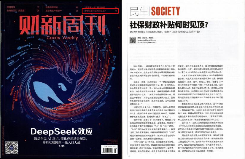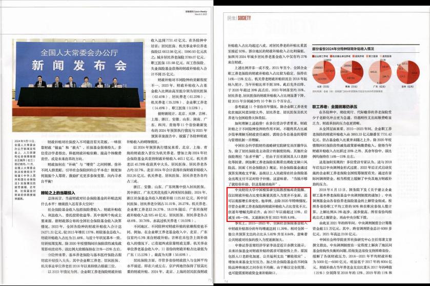 2025年2月下旬,新葡萄官网杨再贵教授就社保财政补贴问题接受了《财新周刊》采访。3月3日,《财新周刊》发表了《社保财政补贴何时见顶》的深度报道。