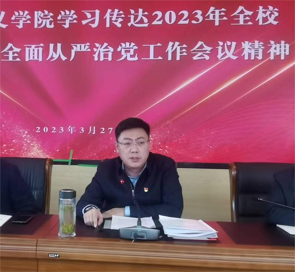 会上,拓俊杰全文传达了校党委李树林书记在我校2023年党的建设暨全面从严治党工作会上的讲话,深刻学习领会李树林书记所提出的新形势下我校全面贯彻落实党中央和自治区党委关于全面从严治党的决策部署的八点要求:(1)坚持思想铸魂,学懂弄通做实习近平总书记关于教育、高校党的建设的重要论述;(2)突出政治引领,加强党对学校工作的全面领导;(3)夯实基层基础,增强基层党组织政治功能和组织功能;(4)强化干部队伍建设,努力打造高素质干部队伍;(5)推进作风建设,驰而不息纠“四风”树新风;(6)加强纪律建设,着力营造风清气正的教育环境;(7)完善制度建设,切实推进大学治理体系和治理能力现代化;(8)狠抓责任落实,推动形成管党治党、办学治校强大合力。