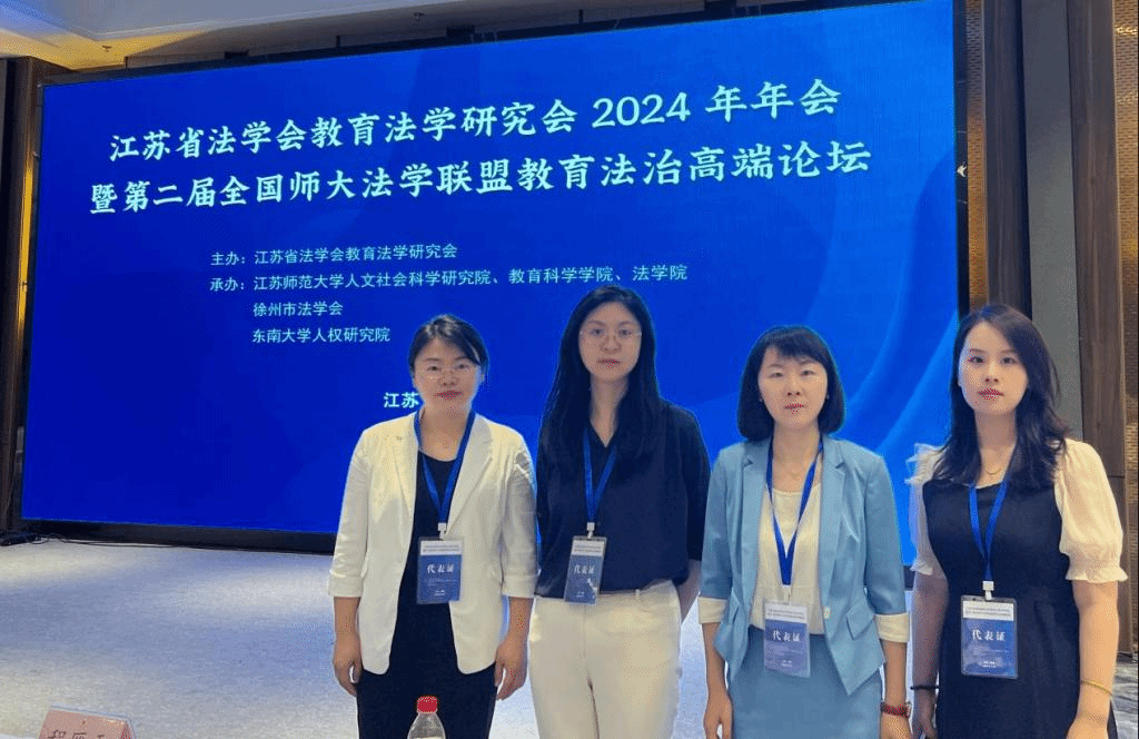 2024年6月9日,江苏省法学会教育法学研究会2024年年会暨第二届全国师大法学联盟教育法治高端论坛在江苏省徐州市成功举办。本次会议由全国师大法学联盟、江苏省法学会教育法学研究会主办,江苏师范大学人文社会科学研究院、教育科学学院、法学院,徐州市法学会,东南大学人权研究院承办,来自全国近二十个省(市)的180多名专家学者、法律实务工作者参加会议。法学系主任其乐木格、教师杨红、祝丽娟、白文静参加会议。