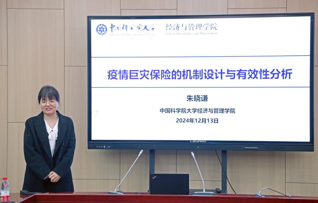 中国科学院大学经济与管理学院副教授朱晓谦就“疫情巨灾保险的机制设计和有效性分析”发表主旨演讲。朱老师探讨了疫情巨灾保险的设计理念,包括损失测算、基金规模确定和赔付比例指标的构建等,通过实证研究展示该保险基金在短期和中长期的有效性。她强调,金融工具在应对非自然因素导致的大规模风险事件中具有重要作用,通过引入市场机制分担风险,能够缓解财政压力并提高资源分配效率,显著提升社会抵御突发公共卫生事件的能力。