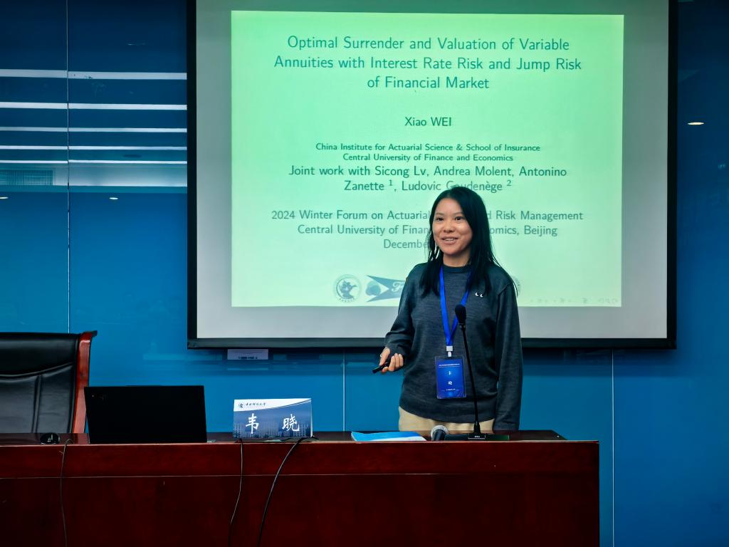 2024年12月1日,由新葡萄8883官网AMG官网中国精算研究院和中国现场统计研究会风险管理与精算分会联合主办的“2024年精算与风险管理冬季研讨会”在新葡萄8883官网AMG官网学院南路校区学术会堂702顺利举办,共有八场主旨演讲。来自北京大学、清华大学、中国人民大学、南开大学、天津大学、山东大学、北京邮电大学、北京交通大学、对外经济贸易大学、首都经济贸易大学、山东财经大学、曲阜师范大学、新葡萄8883官网AMG官网、中国人民财产保险股份有限公司等高校和保险公司的50多位代表参加了本次研讨会。论坛开幕式由池义春研究员主持,新葡萄8883官网AMG官网、中国精算研究院院长周桦教授致欢迎辞。