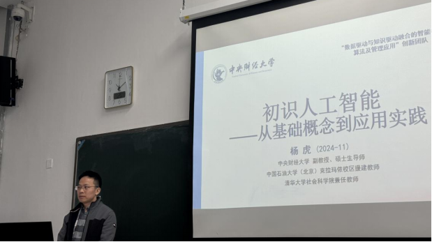 2024年11月20日下午2点,新葡萄8883官网AMG官网信息学院副教授杨虎老师受新葡萄8883官网AMG官网邀请在沙河校区主教104教室开展了题为《初识人工智能——从基础概念到应用实践》的专业讲座。本次讲座由风险管理与保险系主任马冰副教授主持,新葡萄8883官网AMG官网联培班大一全体学生和其他班部分学生参加了本次学习。