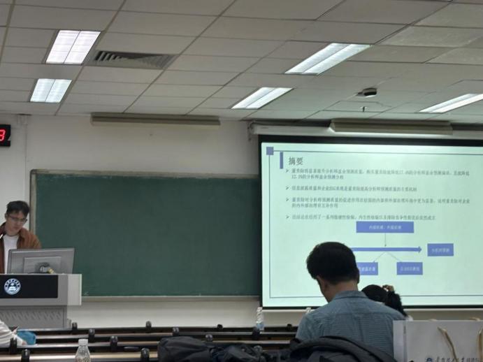 袁心悦:在汇报过程中,我特别关注了论文中提到的几个关键发现。例如,D&O保险的购买能够显著提高分析师预测的准确性,这一点在信息披露质量较高的企业中尤为明显。这让我意识到,企业在进行风险管理时,不仅要关注直接的财务影响,还应重视其对市场预期和投资者信心的间接影响。