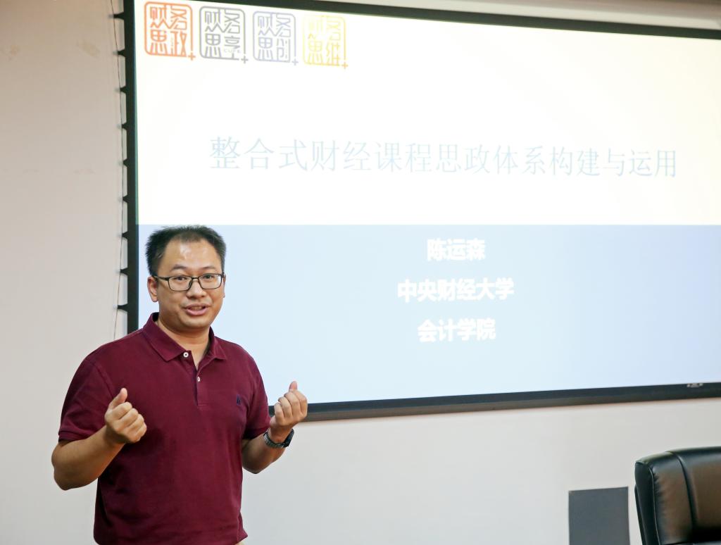 陈运森教授以他所教授的财务管理学为例,从课程基本情况、教学理念与目标、教学痛点所在、整合式课程思政体系构建、教学内容创新、教学过程与方法创新、教学考评与反馈创新、教学成效与经验推广八个方面全面分享了财经课程思政体系的构建全过程及运用。他强调,教育的核心是用心,在教学设计过程中教师要“将心注入”,做好学生学情分析,找到教学痛点,结合培养扎根中国的财经应用型创新人才的目标,全面贯通“财经+思政”,打造“全流程、全链条、全方位、全考核”的整合式课程思政体系。陈教授的报告幽默诙谐,讲授过程穿插着妙趣横生的案例,让老师们深切感受到了他对教学工作的用心专注和对待学生培养的高度责任心。老师们均表示受益匪浅,并展开了热烈的交流讨论。