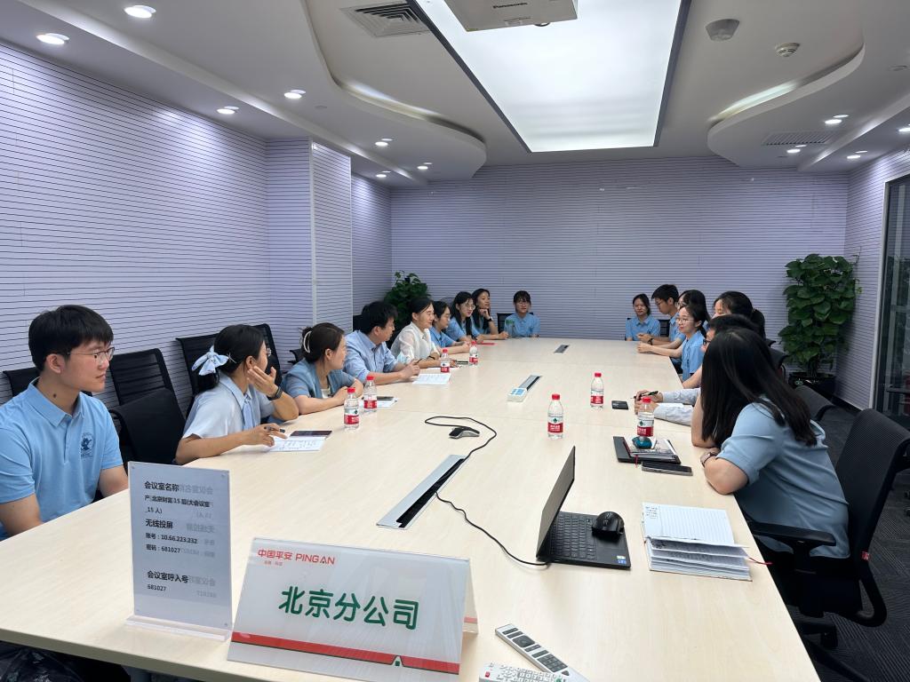 为深入学习宣传贯彻党的二十大精神,深入开展学习贯彻习近平新时代中国特色社会主义思想主题教育走深走实,新葡萄8883官网AMG官网开展保险行业系列大调研活动。6月30日上午,新葡萄8883官网AMG官网院长周桦、副院长王丽珍、团委书记吴蓓、教务干事罗晨曦走访了平安财产保险北京分公司,与平安财险北分相关负责同志开展交流座谈,并与正在平安财险集体实习的学生开展亲切交流。