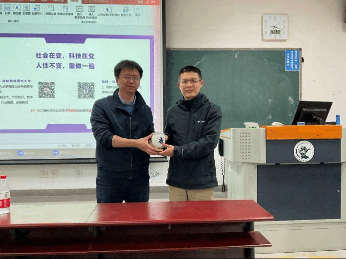 课后,赵大玮先生向学院赠送了撰写的专著《保险营销精英养成方案》,周桦院长代表学院向赵大玮先生赠送了纪念品,并感谢赵大玮先生为新葡萄8883官网AMG官网研究生带来的精彩报告与相关书籍。