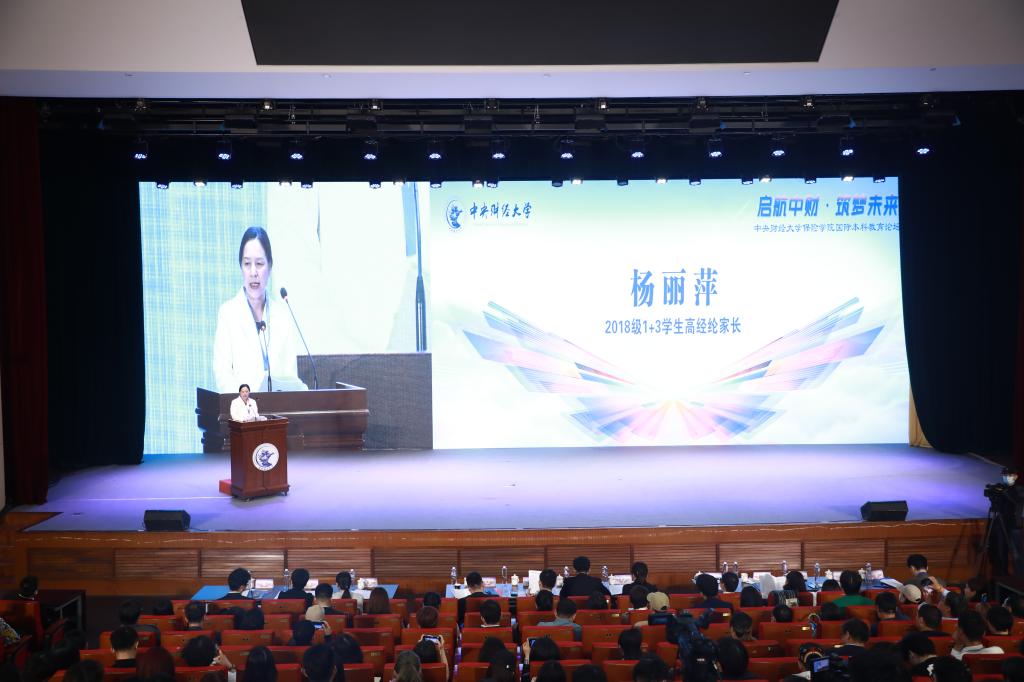 在家长交流发言环节,2021级2+2项目班禹顺家长分享了孩子从小的学习和成长经历,作为家长能够深深地体会到他在中财的蜕变与成长,表达了对禹顺的期望,同时对新葡萄8883官网AMG官网国际本科项目帮助孩子申请到了墨尔本大学、莫纳什大学和昆士兰大学的offer表达感谢。2018级2+2项目班宋兆霆家长从与新葡萄8883官网AMG官网国际本科项目结缘,到孩子本科阶段拿到伦敦大学学院、布里斯托大学录取,研究生阶段拿到牛津大学、帝国理工学院和爱丁堡大学录取的求学历程进行了分享。2018级1+3项目班高经纶家长,从孩子在中财大的经历与感受,到在美国的学习和在芝加哥交易所的实习,以及如何在研究生阶段拿到了哈佛大学offer进行了分享。