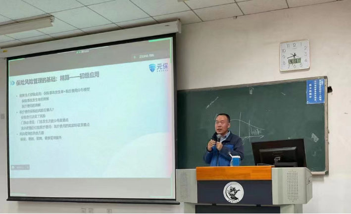2023年4月13日晚,元保保险经纪(北京)有限公司副总裁兼总精算师张利凯先生到访新葡萄官网,为学院研究生一年级同学做题为《保险风险:保险实务的几个例子》的课程讲座。
