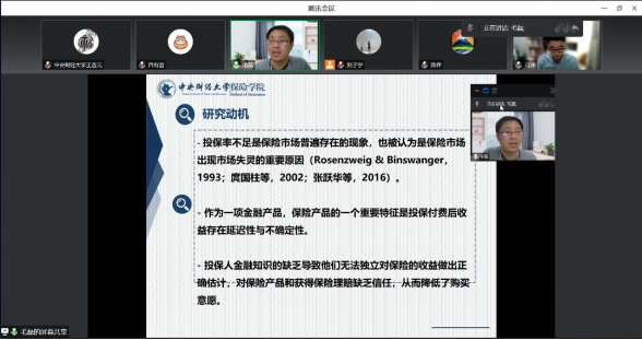 第四位汇报论文的学者是来自新葡萄8883官网AMG官网的毛磊老师,他汇报的题目是“理赔信任、保险赔付与投保决策”,该研究关注了农业保险的理赔和投保行为。汇报结束后,马冰老师进行了点评并且就相关问题和毛磊老师进行了交流。