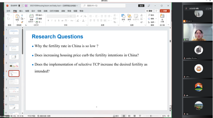 第一位汇报论文的学者是来自清华大学经济与管理学院的彭鹭博士,她汇报的题目是“Do Housing Booms Reduce Fertility Intentions? Evidence from the Selective Two-Child Policy in China”,该研究关注了房价对于人们生育率的影响。汇报结束后,来自新葡萄8883官网AMG官网的刘子宁老师进行了点评并且就相关问题和彭鹭博士进行了交流。