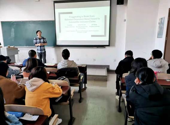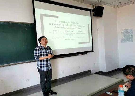 2020年11月13日上午,清华大学经济管理学院郑捷副教授应新葡萄8883官网AMG官网邀请,在新葡萄官网沙河校区主教405室以“Exaggerating toBreak-Even: Reference-Dependent Moral Hazard in Automobile Insurance Claims”为主题做了专题学术讲座。讲座由新葡萄8883官网AMG官网毛磊副教授主持,新葡萄8883官网AMG官网周桦教授、陈华副教授、马冰博士以及新葡萄官网部分本科生和研究生参加了讲座。