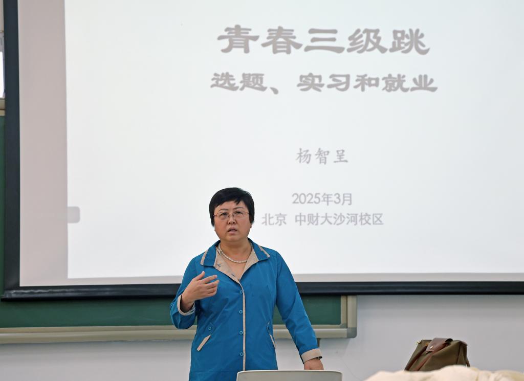 围绕如何实现“青春三级跳”,杨智呈先生为学生提供了针对性参考建议。他认为,在毕业论文选题阶段,应关注前沿实际问题,结合个人能力和资料可得性,“小题大做”,注重定性与定量结合;在实习阶段,需要主动积累人脉,通过实习实践明晰岗位职责和能力要求,主动规划职业目标并及时采取行动;在就业阶段,注意拓宽视野,全面考虑国内外、政企、地域及保险关联行业工作机会,平衡好未来的事业和生活。